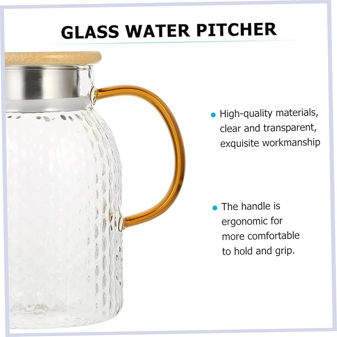 Water Pitcher with Handle The for different drinks, like water, tea, milk, juice, etc.Water Carafe With strong thermal conductivity and large capacity, it can serve your family or entertain guests.Large Capacity Water Pitcher Suitable for family use.Large Capacity Pitcher for Kitchen This pitcher is very