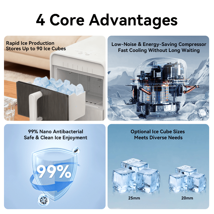 95W Energy-saving Automatic Mini Portable Ice Maker for Home Use-Independent Automatic Liquid Cryogenic Ice Maker by the Royal Air Force
